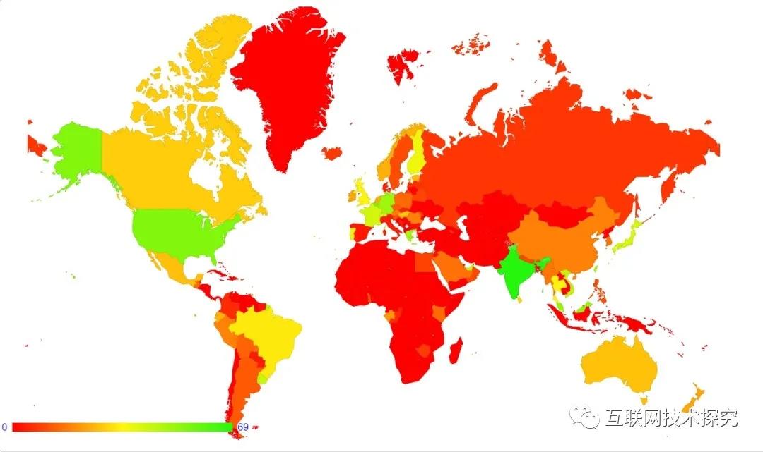 圖2 APNIC全球各國(guó)IPv6部署程度(2020年7月)