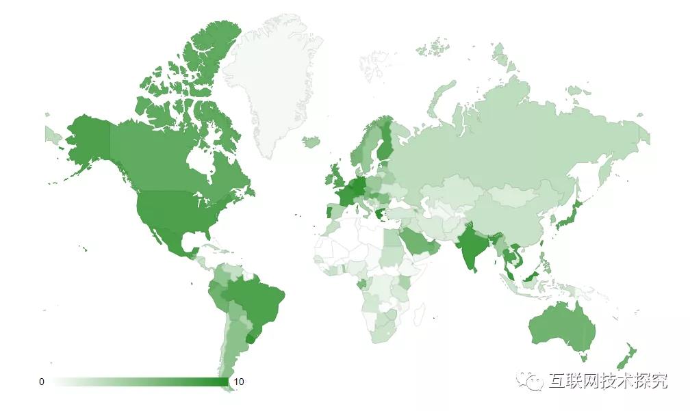 從思科(Cisco)提供的全球 IPv6 部署情況統(tǒng)計(jì)數(shù)據(jù)(圖1)來(lái)看,截止到2020年6月,綜合IPv6部署率在30%左右或以上的國(guó)家或地區(qū)占了地圖面積一半以上。全球IPv6部署率是根據(jù)各個(gè)國(guó)家地區(qū)的網(wǎng)絡(luò)(IPv6 Prefix/Transit IPv6 AS),IPv6網(wǎng)站及IPv6用戶等數(shù)據(jù)按照一定權(quán)值并計(jì)算得出的IPv6部署綜合情況。圖中顏色越深的地區(qū),表示其IPv6部署程度越高,相應(yīng)的IPv6部署率數(shù)值越大。