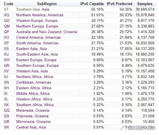 表2 各大洲IPv6能力統(tǒng)計(jì)