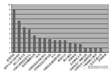 表6 中國公司和機(jī)構(gòu)對RFC貢獻(xiàn)的排名